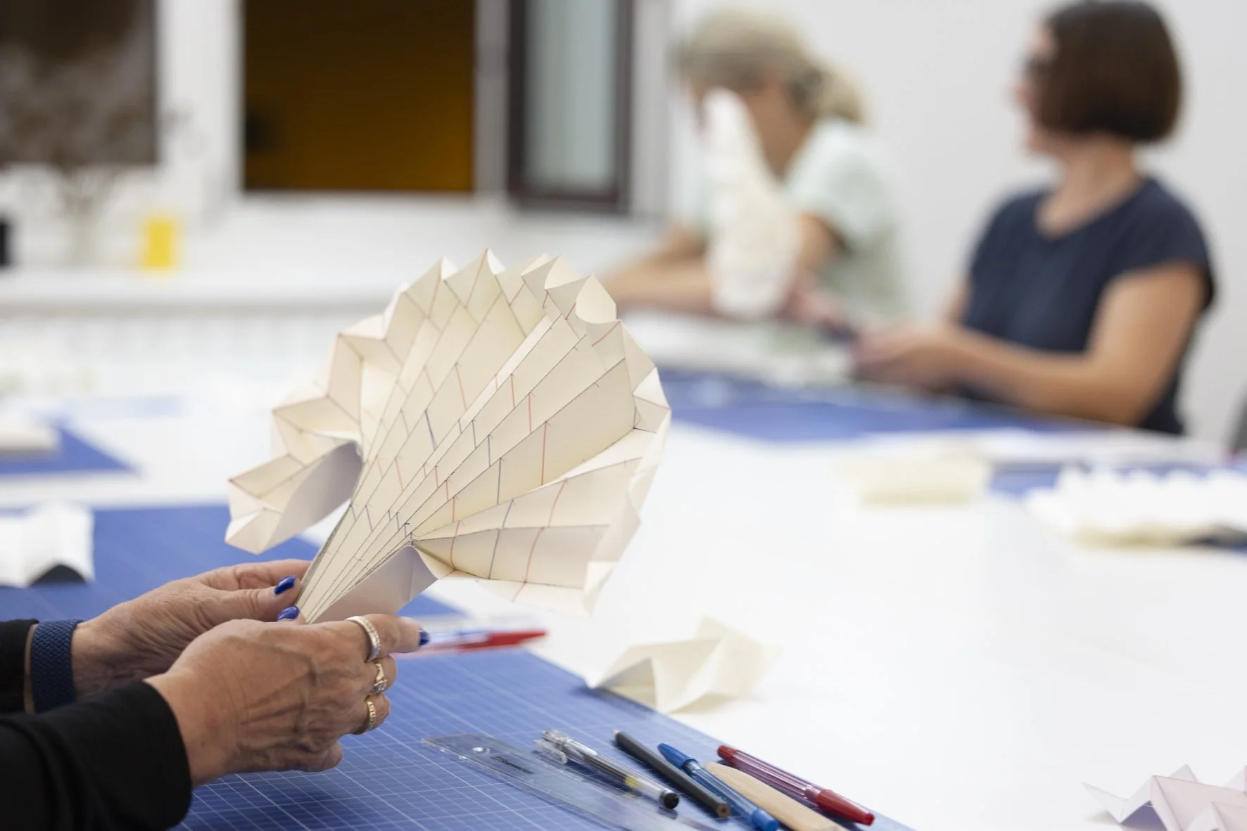 Folding Workshops Lisa Klingersberger offers folding workshops for academic institutions, companies, team buildings and for individuals in her Salzburg studio as well as online tutorials. Online tutorials for individuals Online tutorials for individuals Studio workshops for individuals Studio workshops for individuals Custom workshops for companies Custom workshops for companies Academic lectures for institutions Academic lectures for institutions
