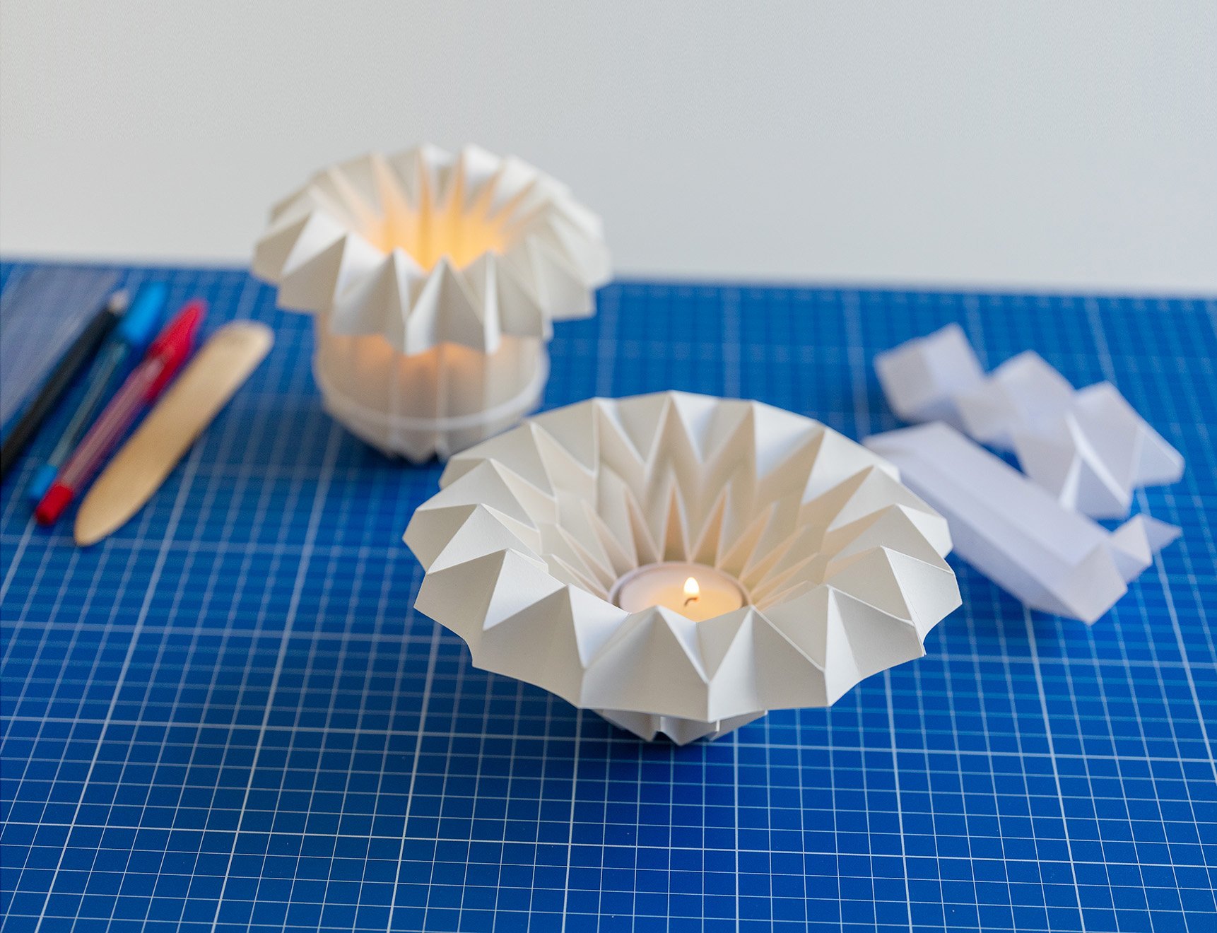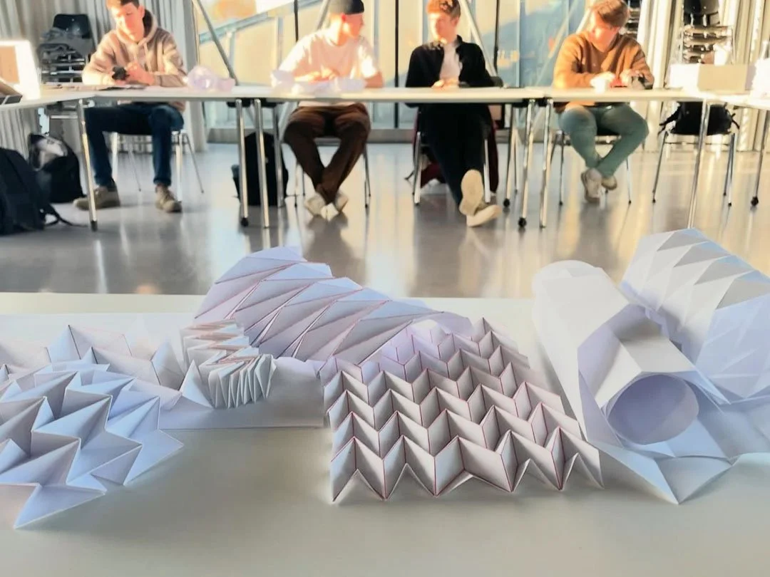 Over 2 - 4 days, students explore the basics of origami, geometric folding techniques, and the logic of crease patterns, combining theory with hands-on practice. Topics include the applications of folds, digital simulation and fabrication methods. The students are discovering how geometric folds can open, twist and transform. Each participant transforms and designs their own crease pattern.