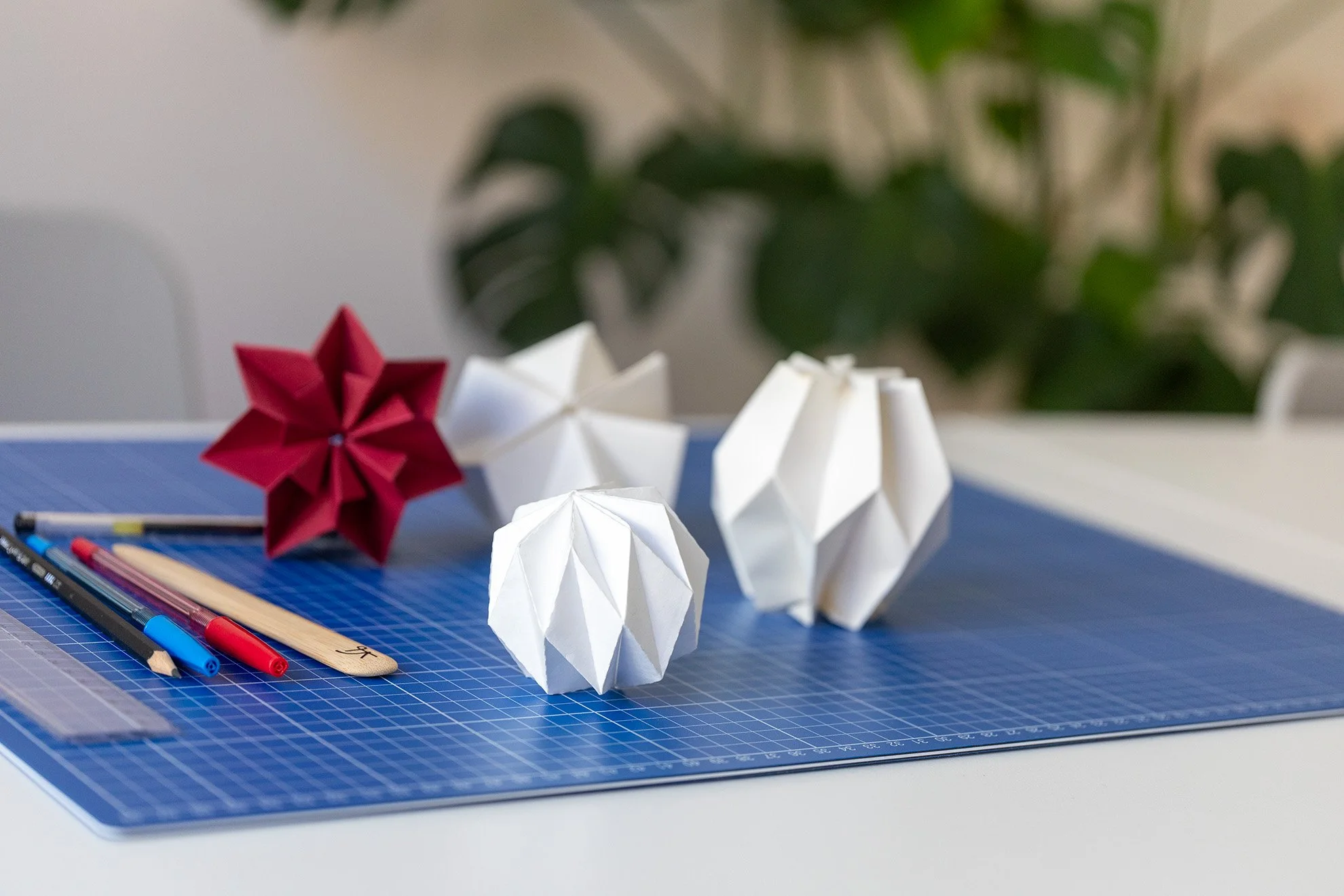 You can book my workshops either as an individual or as a group event, such as a team-building activity, an inspirational input for your design agency or a session with friends. All of my studio folding workshops are screen-free and purely analogue, you’ll work entirely with your hands and fingertips. This offers instant relief from the daily screen time most people experience. Get in touch if you’d like a customized workshop.